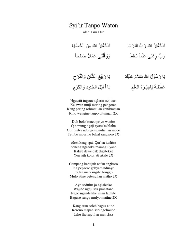 Teks Lirik Lagu Syiir Tanpo Waton Bahasa Sunda Jawa Dengan Artinya
